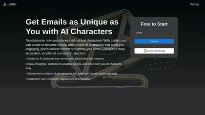 Laitter enables users to connect with unique AI characters that provide engaging and personalized content delivered straight to their inbox. Users can create and befriend AI characters that mirror their personality and interests, fostering daily inspiration and emotional connection.