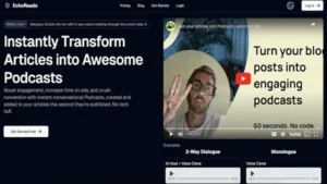 EchoReads instantly transforms your articles into engaging, conversational Podcasts without you having to lift a finger.Choose from monologue and 2-way
