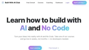 Built with AI Club offers courses and coaching on how to build AI-powered web-applications without coding using no-code tools. Their