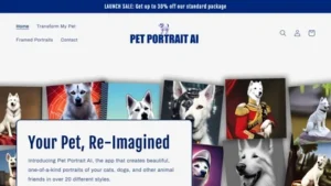 PetPortrait.ai is an AI-powered app that creates one-of-a-kind pet portraits in 20 different styles based on 20 photos of your