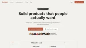 Buildpad is an AI-guided platform designed to assist founders in transforming their ideas into viable products. Through three distinct phases,