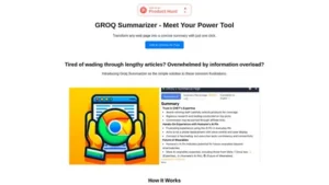Groq Summarizer is a web-based tool designed to transform lengthy articles and web pages into concise summaries with just one