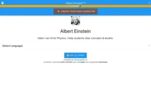 This is an AI tool called Albert Einstein that helps students clear doubts on physics concepts in English. It can
