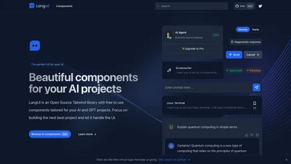 Browse over 60 AI components tailored for GPT projects on Lang UI’s open-source library. Perfect for building the next AI project, these components are designed to handle the UI effortlessly. Whether you need a Business Metrics Analyzer or a Screenwriter tool to develop engaging scripts, Lang UI has you covered.