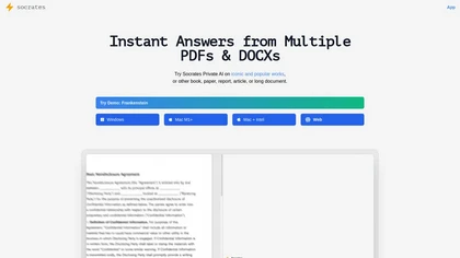 With a secure and private interface available on Windows, Mac (M1+ and Intel), and web platforms, Socrates ensures that files are stored securely unless explicitly shared.Users can ask questions, compare documents, and search specific sections within their files using state-of-the-art AI models.