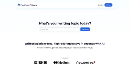 AI Essay Writer is a powerful tool designed to help users generate high-quality essays in a matter of seconds. With this tool, users can easily rephrase sentences, brainstorm ideas, and create well-structured essays without the hassle of manual research. The AI Essay Writer also offers features such as content summarization, essay outlining, and a citation machine, making it a valuable resource for students and professionals looking to streamline their writing process. Sign up today to experience the convenience of AI-powered essay writing.