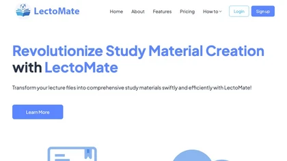 Lectomate is an AI-driven study companion that revolutionizes the creation of study materials. With its intuitive design, students and educators can swiftly and efficiently transform lecture files into comprehensive study materials such as summarized key points, study guides, mind maps, flashcards, and tailored questions.