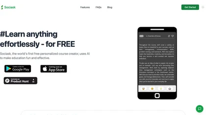 Sociask is an AI personalized learning app that revolutionizes education by tailoring courses to individual needs and interests, completely free of charge.By analyzing a user’s preferences and learning style, Sociask creates custom courses packed with relevant content, ensuring a fun and effective learning experience.