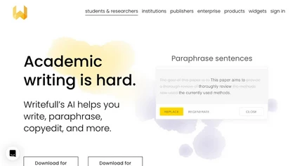 Writeful is an AI-powered tool that helps researchers and students with their academic writing. It offers features such as language feedback, paraphrasing, abstract and title generation, and an academizer. Writeful has various widgets to help with language and sentence construction. It is available as a desktop download and can be used with Word and Overleaf for editing and publication. Writeful provides a fast and secure way to revise text, with full encryption and no text storage.