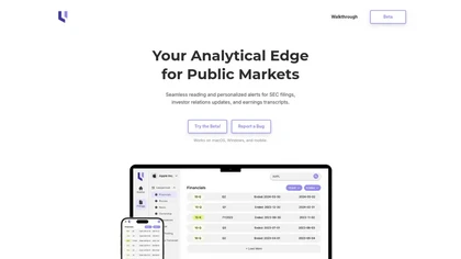 Unlevered is an AI-sec platform designed to enhance financial document analysis and investor relations management. Users can access SEC filings, earnings transcripts, and public market updates through a seamless interface compatible with macOS, Windows, and mobile devices.