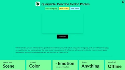 It operates completely offline, ensuring enhanced privacy and security for user’s photo collections without any need for internet connectivity. This tool supports various browser tags, providing a flexible user experience. Queryable is an open-source project available under the MIT license, making it accessible for those interested in contributing or customizing the software.