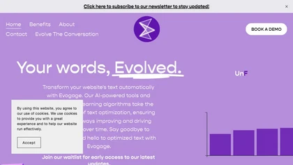 Evogage is an AI-powered text optimization tool that uses reinforcement learning algorithms to automatically optimize website copy without any manual work. The platform continually learns from past engagement to create new, engaging, and optimized content that resonates with the website’s audience. Evogage’s advanced algorithms analyze past engagement to create new, optimized content that maximizes results. The tool allows for continual improvement of website content and helps businesses achieve better engagement and conversions over time. Evogage requires no technical expertise and provides a user-friendly tool for easy use.