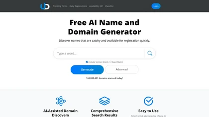 With a comprehensive search system scanning 160 million registered domains daily and processing a vast amount of data, you can search for availability across 5,000 domains in seconds.Enhance your search by utilizing the thesaurus, dictionary, and word lists containing every known English word, or switch to the advanced mode for more control over domain combinations.