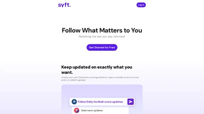 With Syft, you can create personalized channels tailored to your specific interests, from hot stock picks to celebrity gossip to sports updates.By leveraging advanced algorithms, Syft scours the web for the latest and most relevant content from blogs, forums, news websites, RSS feeds, video platforms, and social media, delivering precise and concise updates directly to your customized channels.