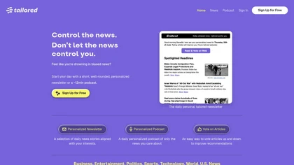 TailoredPod is a personalized news podcast designed to deliver concise and well-rounded daily summaries of current events based on user interests. The service curates articles from an array of trusted sources across various categories including business, technology, politics, and sports.