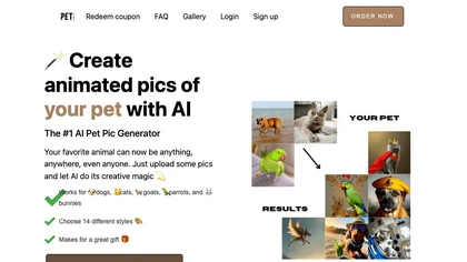 Petpic is an AI tool that helps create animated pet pictures using 14 different styles.It allows users to upload pet photos and choose the style they prefer for a fee of $25.The tool recommends 10 close-up, 3 side profile, 5 chest-up, and 3 full-body photos of pets.