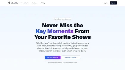 Inboxhiiv offers a streamlined approach to podcast management, designed for users ranging from journalists to tech enthusiasts. The tool delivers personalized chapter breakdowns and highlights directly to your inbox, ensuring you never miss key moments from your favorite shows.
