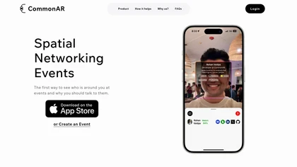 Commonar is a spatial networking tool designed to enhance in-person interactions during events. Users can create or join events through a streamlined setup process, which includes creating a profile with a bio and social media links. The tool facilitates connections by allowing attendees to discover each other using camera functionality, generating meaningful conversations through personalized compatibility data.