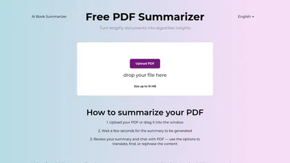 AI PDF Summarizer is a web-based tool that streamlines the process of extracting key insights from lengthy documents. Users can upload PDF files up to 10 MB and receive concise, generated summaries in seconds, making this tool ideal for students, researchers, and professionals.
